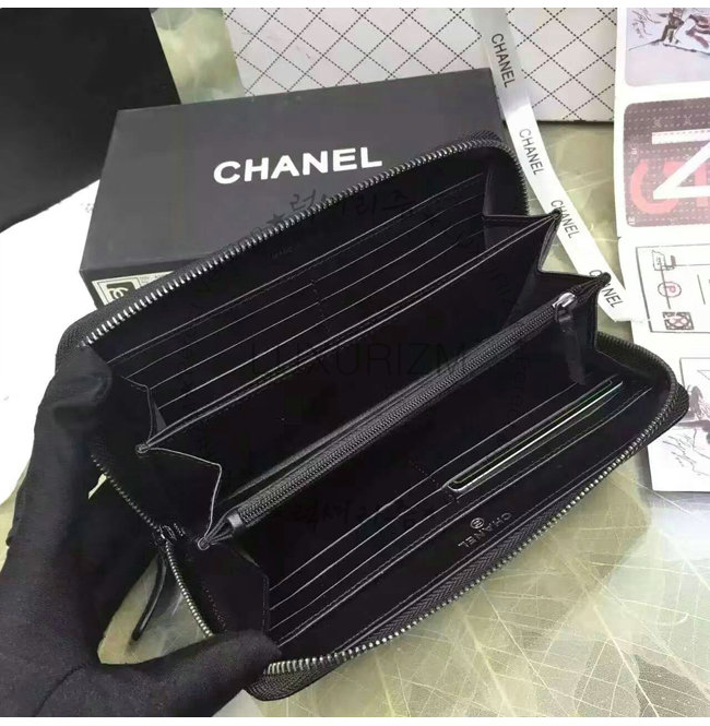 #홍콩 이미테이션 샤넬 쇼핑몰 스페셜오더CHANEL-A80815 샤넬 보이 고트스킨 골드 메탈 지퍼 지갑 블랙.
