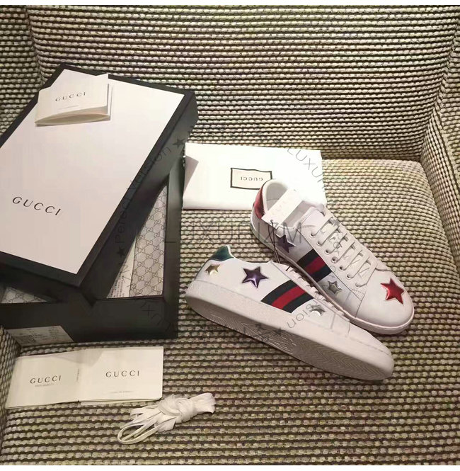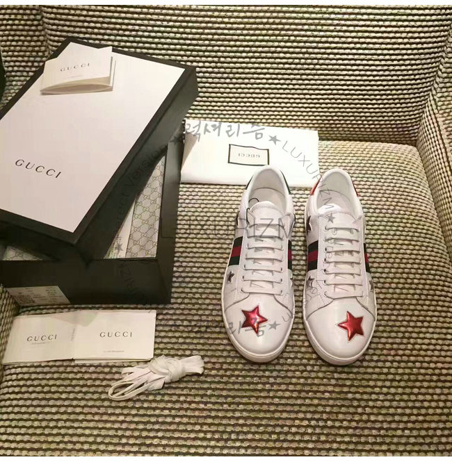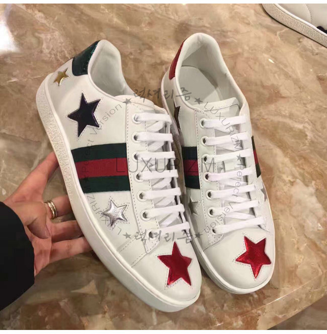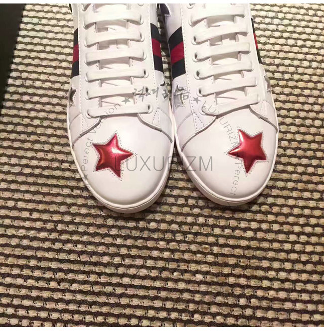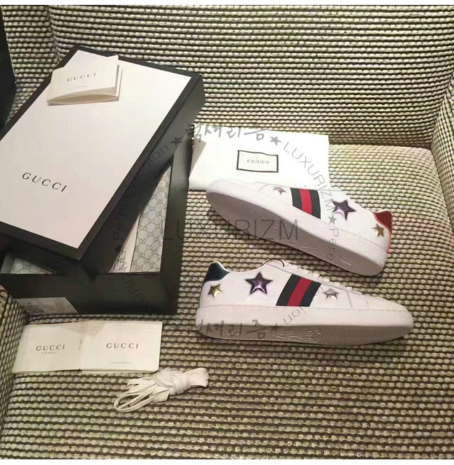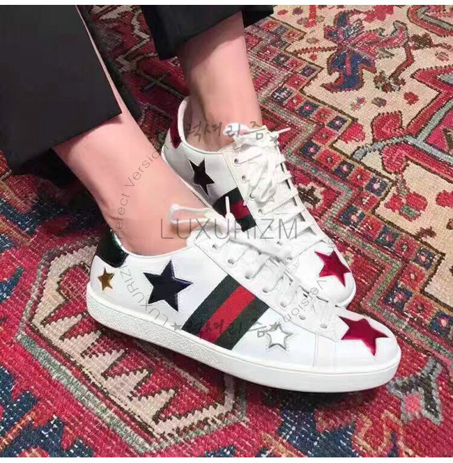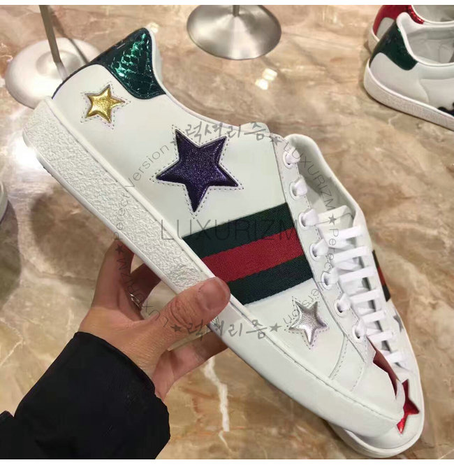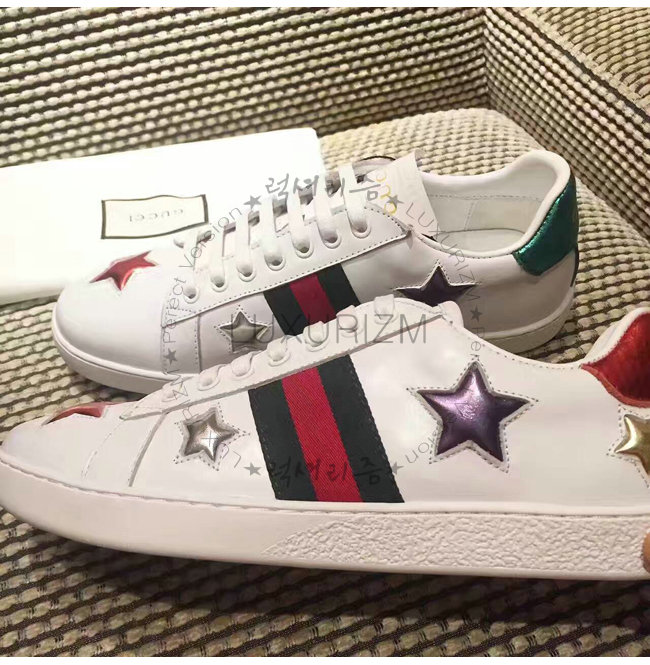 -에이스 로우탑 스니커즈/구찌 Web 및 별 모양 화이트 가죽 디테일/러버 솔/높이 5mm.