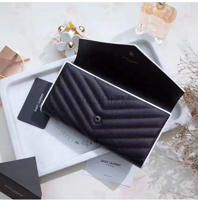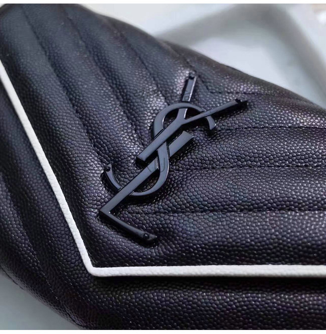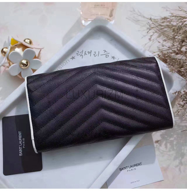 [스페셜오더]SAINT LAURENT-372264 생 로랑 도브 블랙 화이트 그랑 드 뿌드르 텍스처드 마틀라세 가죽 라지 모노그램 생 로랑 플랩 지갑