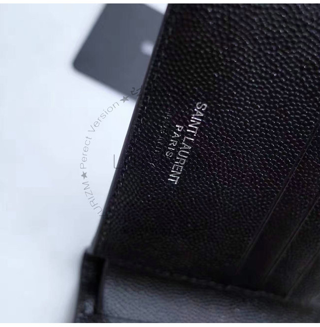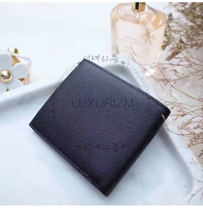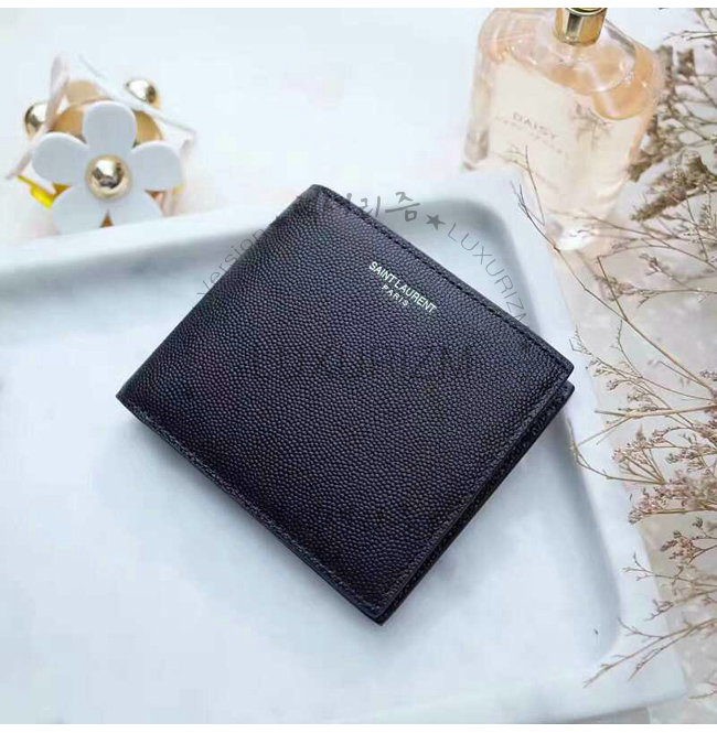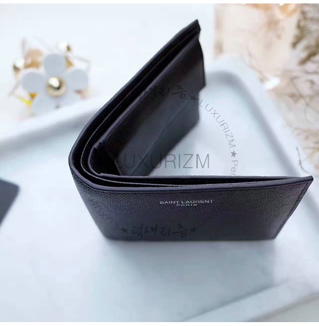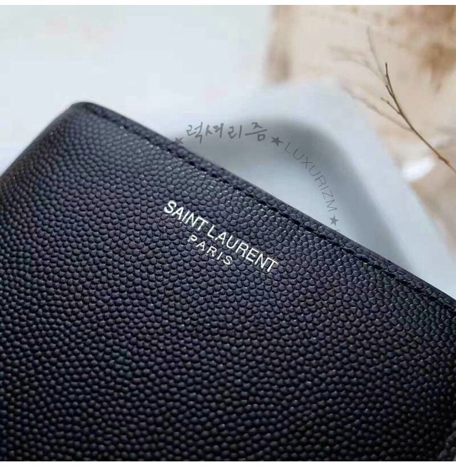 SAINT LAURENT-396303 생 로랑 블랙 로고 각인 시그니처 동전 파우치 디테일 클래식 생 로랑 반지갑.