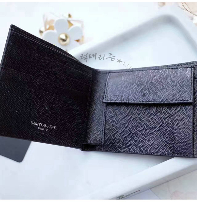 #생로랑 홍콩명품지갑 추천쇼핑몰SAINT LAURENT생 로랑 블랙 로고 각인 시그니처 동전 파우치 디테일 클래식 생 로랑 반지갑.