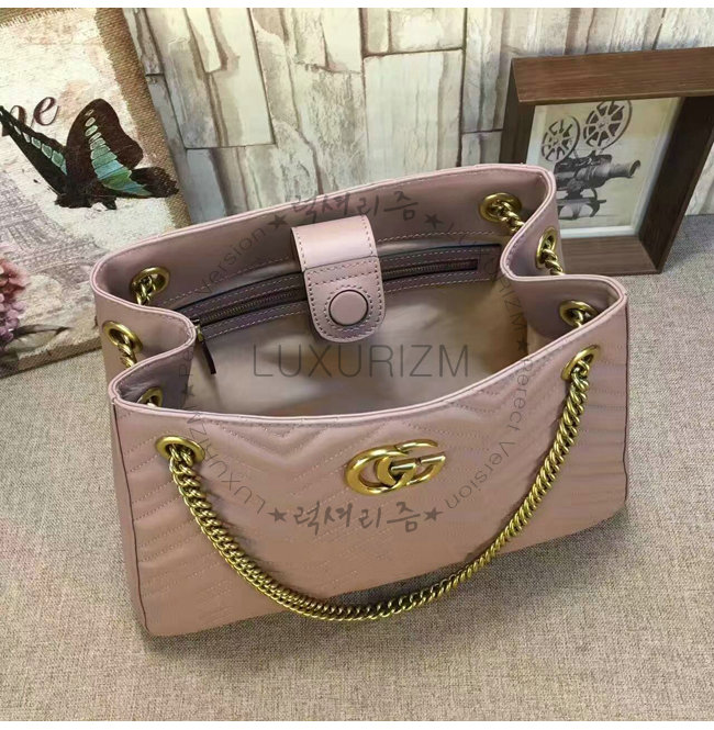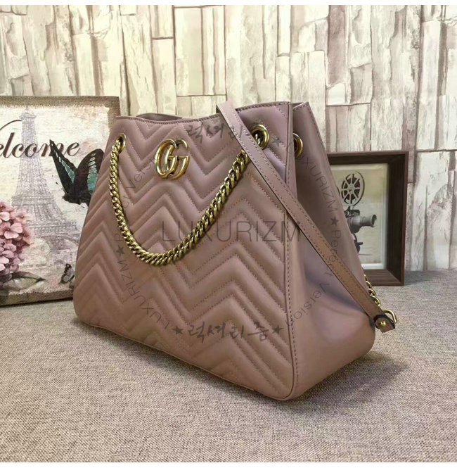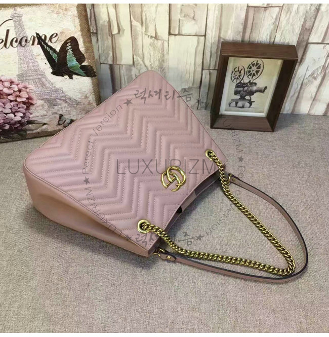 GUCCI-453569 5729 구찌 GG Marmont 마몽 마틀라세 더블G메탈 미디엄 체인 숄더백 누드
