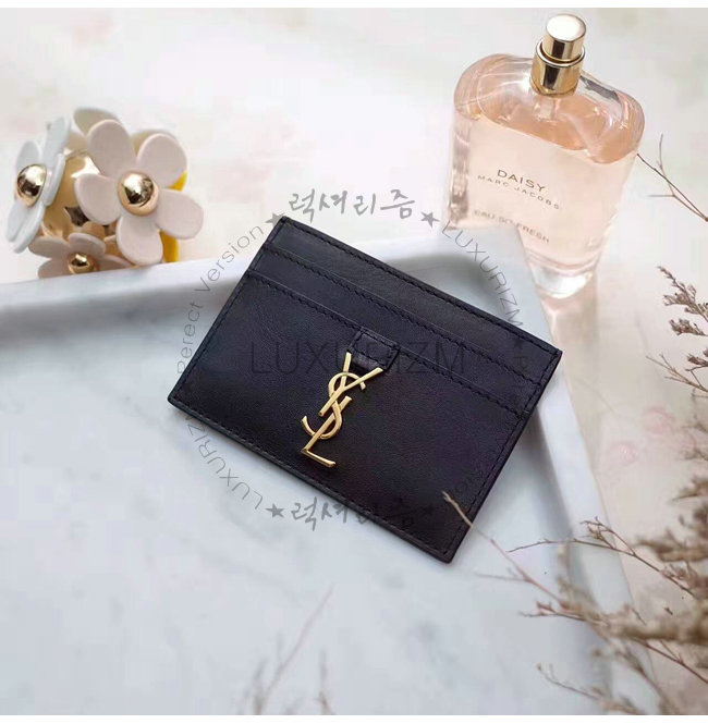 -메탈 인터로킹 YSL 시그니처 디테일의 생 로랑 카드 케이스/골드-톤의 하드웨어/5개의 카드 슬롯.