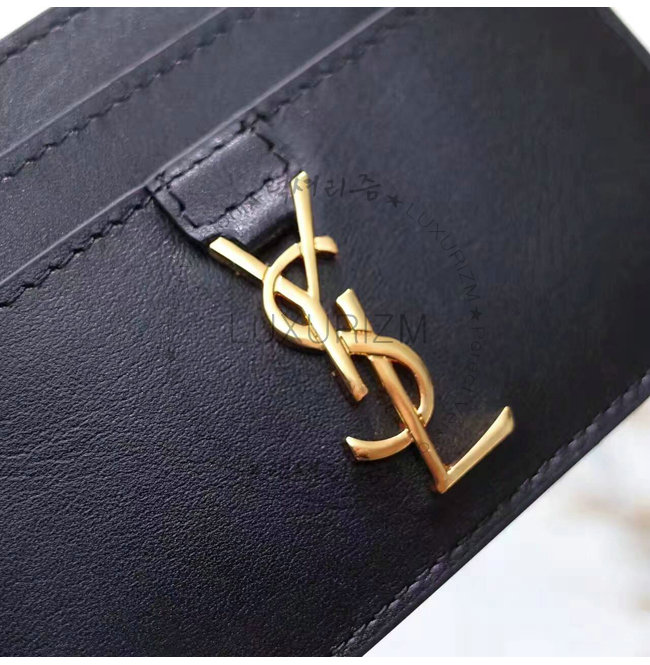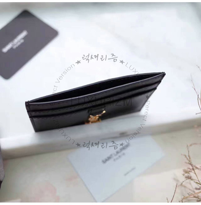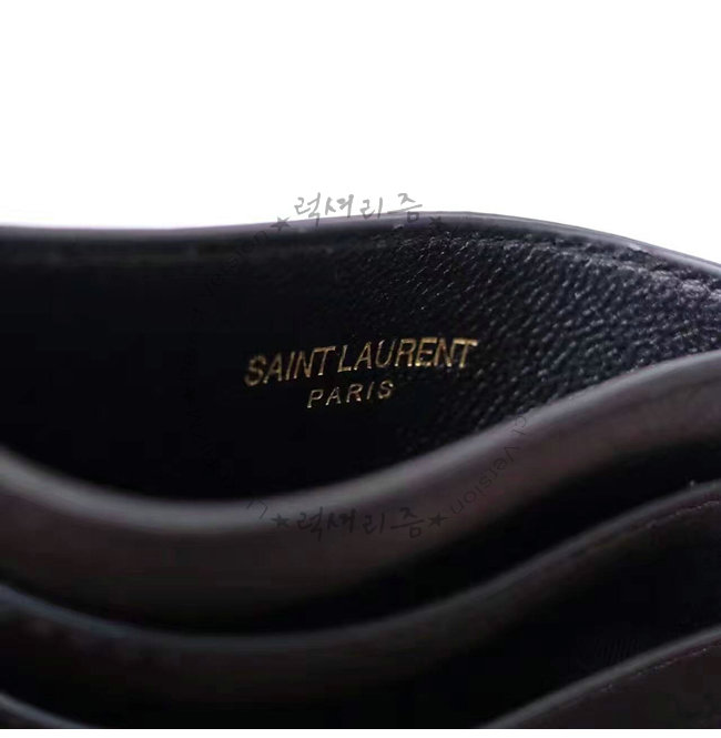 SAINT LAURENT-423480 생 로랑 블랙 메탈 인터로킹 YSL 시그니처 디테일 생 로랑 카드 케이스.