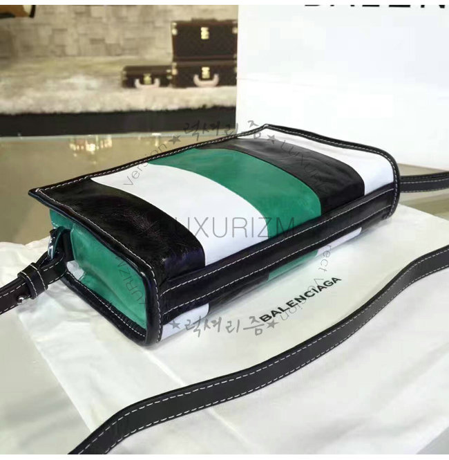BALENCIAGA-B1188 발렌시아가 바자 스몰 스트랩 클러치 백 블랙/화이트/그린