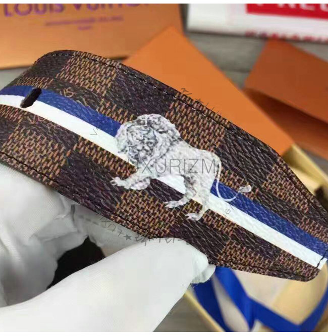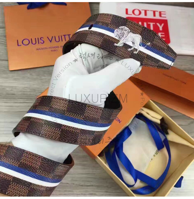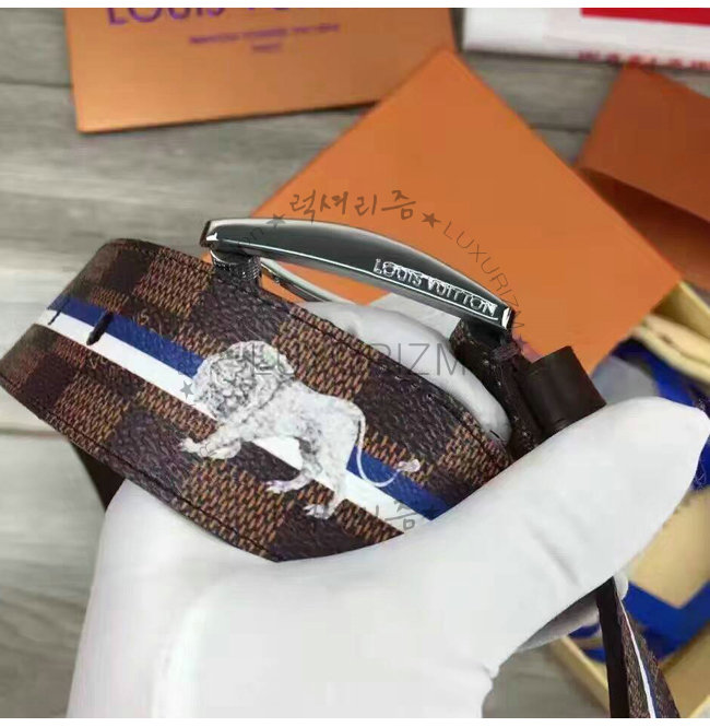 #홍콩 루이비통 동물 스트린장식 벨트 스페셜오더LOUIS VUITTON-M9357Q 루이비통 다미에 에벤 사자 스탬프 벨트.