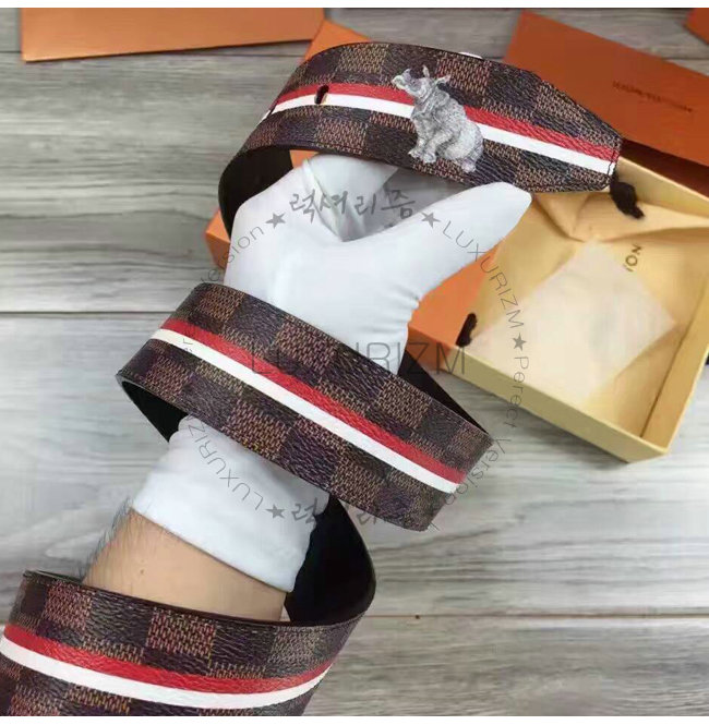 #홍콩 루이비통 동물 스트린장식 벨트 스페셜오더LOUIS VUITTON-M9356Q 루이비통 다미에 에벤 하마 스탬프 벨트.