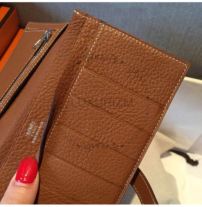 -에르메스H트레이드마크/스트랩 잠금장치/5개 카드포켓/2개 지폐 수납공간/지퍼 동전 수납공간.