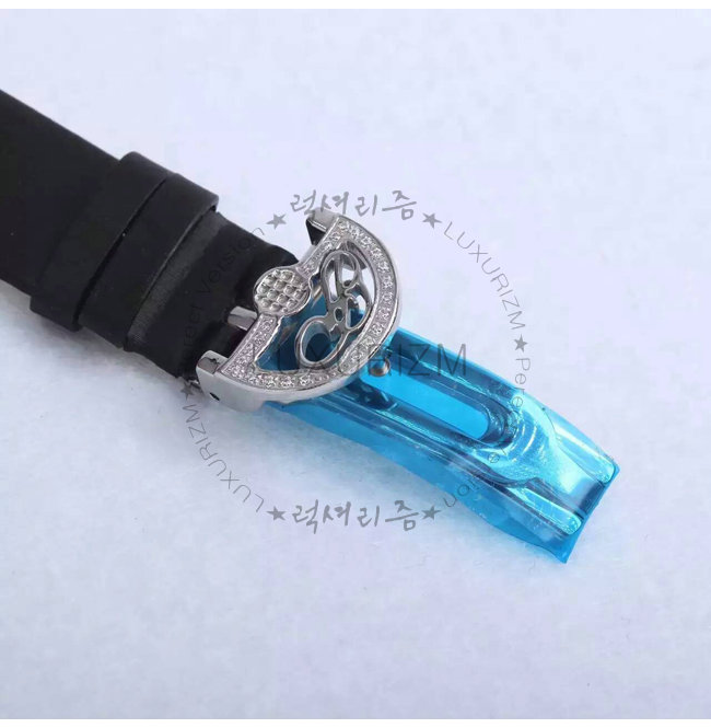 -크리스탈 사파이어 글래스 케이스백/가죽스트랩 디버클/큐빅 셋팅 베젤/30시간 파워리저브.
