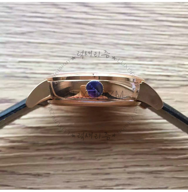 -18k 로즈 골드 특수 이온 전착 도금(IPG)/브라운 레더 벨트식 스트랩/생활방수.