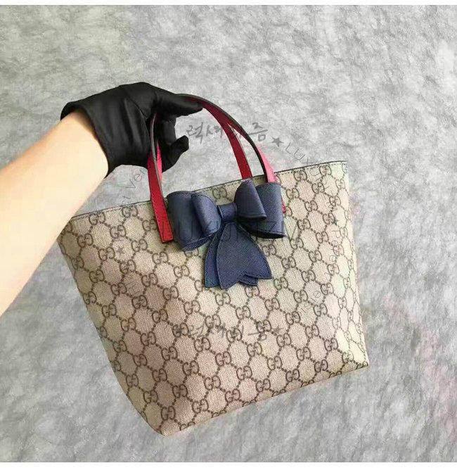 GUCCI-457232 9662 구찌 GG 수프림 칠드런 보우 토트백 블루 리본