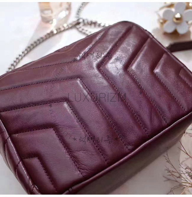 [스페셜오더]SAINT LAURENT-454317 생 로랑 다크 레드 은장 클래식 스몰 모노그램 생 로랑 볼링 백