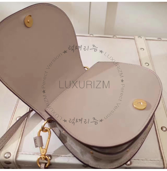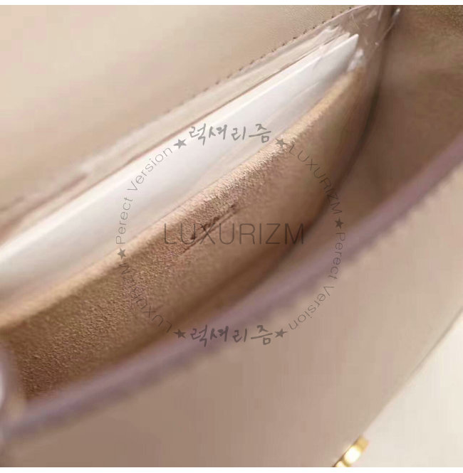 -브래스 마감/세련된 beige 스웨이드 카프스킨 안감/뒷면에 외부 플랫 포켓.