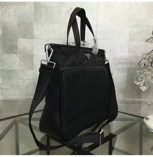 PRADA-2VG032 프라다 사피아노 가죽 트림 장식 나일론 핸들 토트백