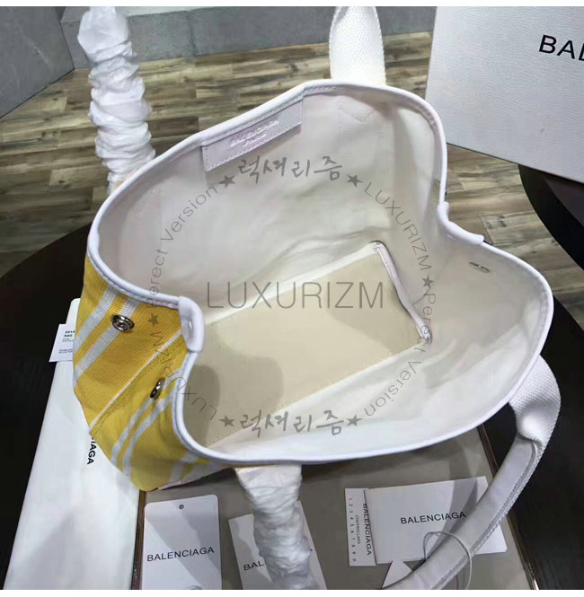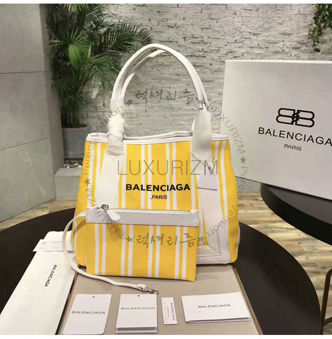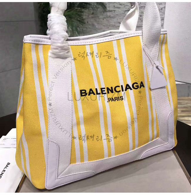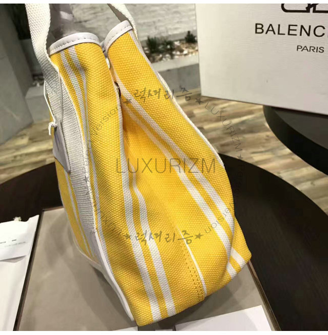BALENCIAGA-B0326 발렌시아가 옐로우 스트라이프 캔버스 카바스 S 스몰 토트 백