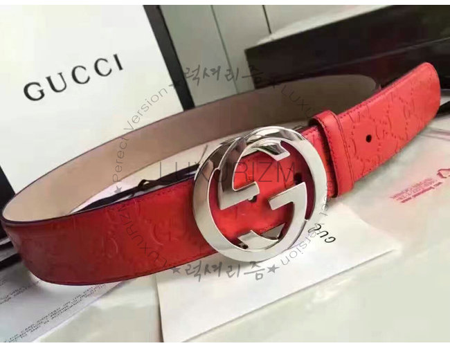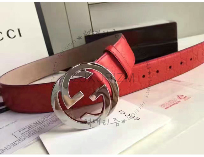 GUCCI-114984 6420 구찌인터로킹 G 버클 레드 씨마 남성용 벨트