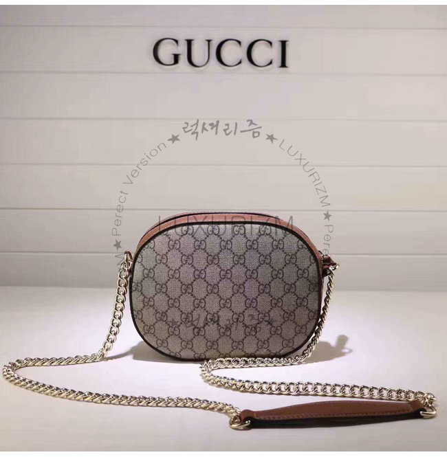 GUCCI-409535 8526 구찌 체인 숄더 스트랩 GG 수프림 캔버스 콤팩트 백 브라운 가격 : 230,000원