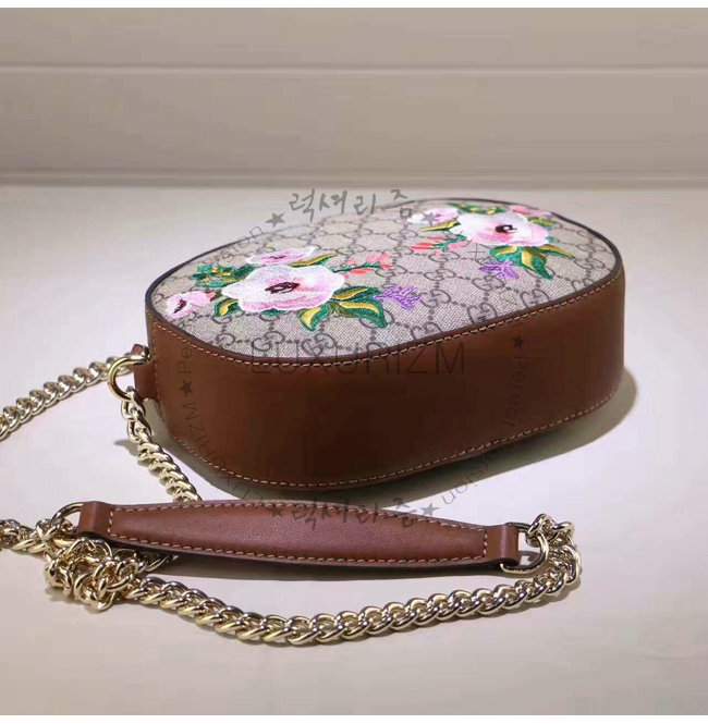 GUCCI-409535 8315 구찌 체인 숄더 스트랩 새 및 플라워 자수 아플리케 GG 수프림 캔버스 콤팩트 백