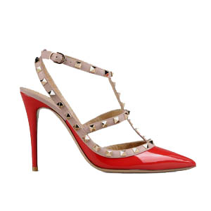 VALENTINO-LW2S0393 발렌티노 락스터드 앵클 스트랩 레드/베이지