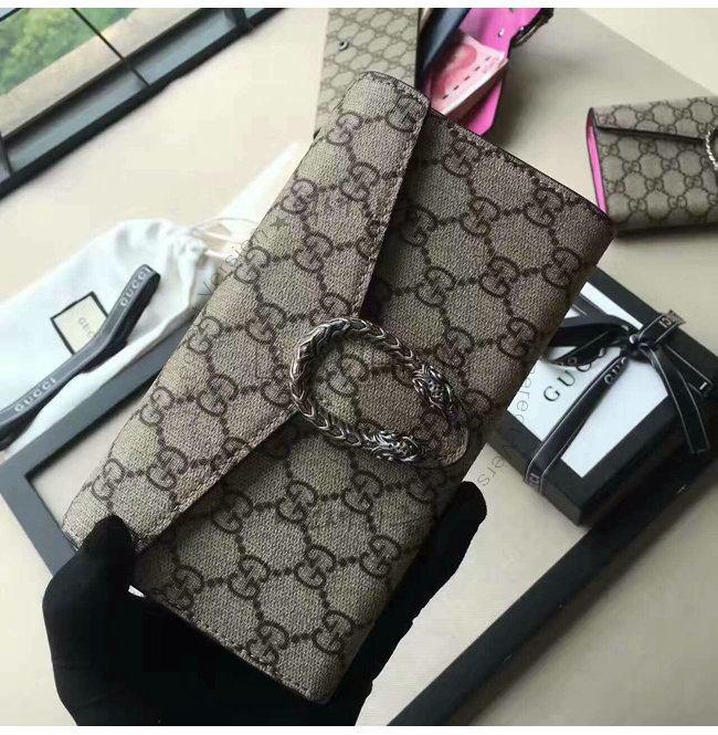 텍스처 타이거 헤드 메탈 디테일이 돋보이는 디오니서스 GG 수프림 스트럭처 체인 미니 백 및 지갑