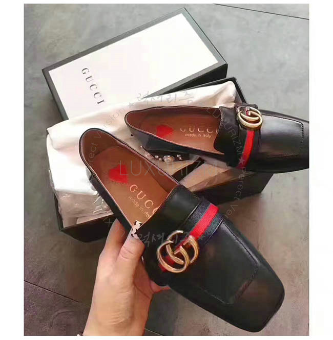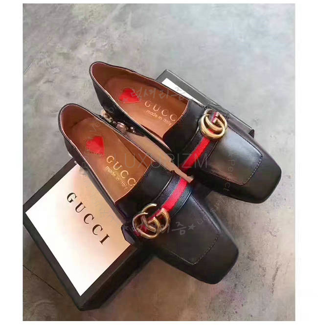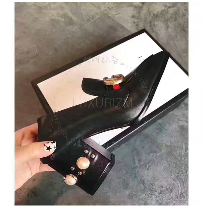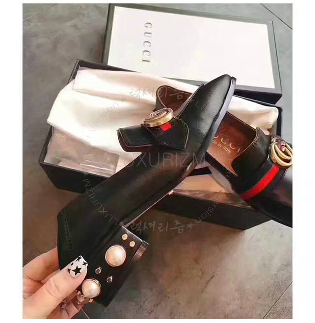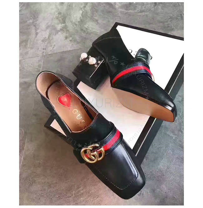 GUCCI-425943 구찌 가죽 미드힐 로퍼 블랙
