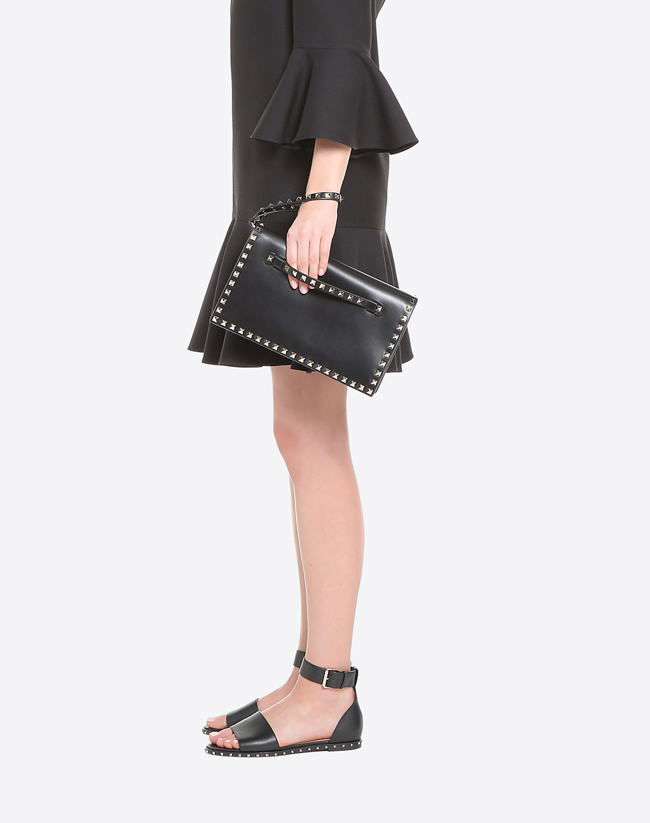 나파 가죽 소재의 Valentino Garavani 락스터드 클러치 플래티넘 마감 스터드