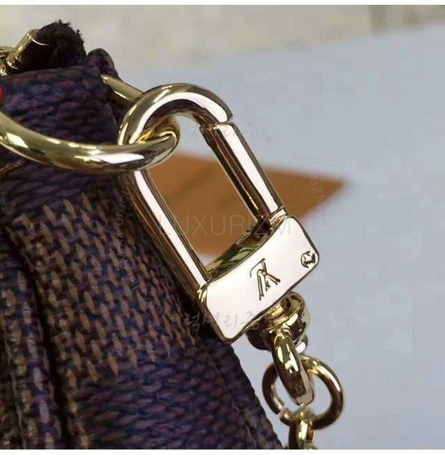 다미에 캔버스 초코렛 색의 부드러운 가죽 트리밍 빨간색의 텍스타일 라이닝