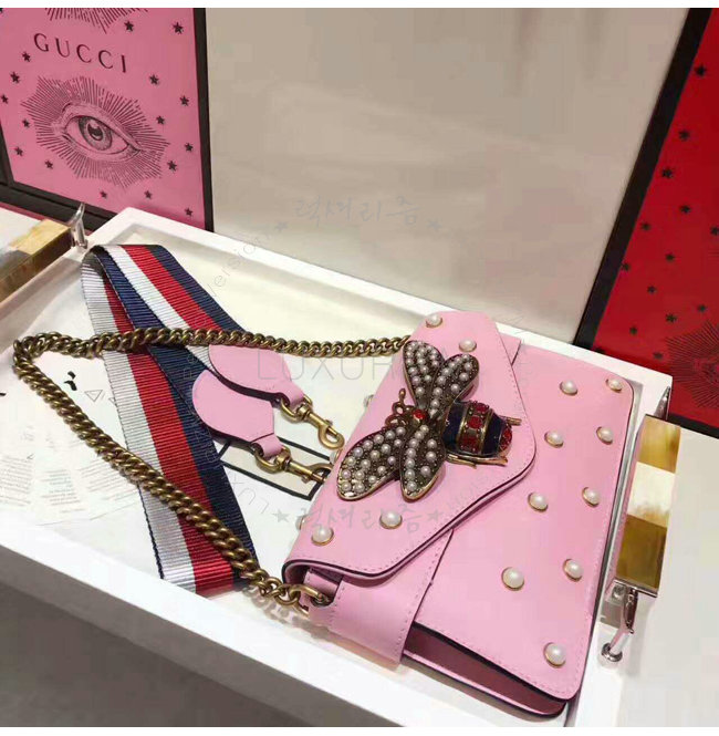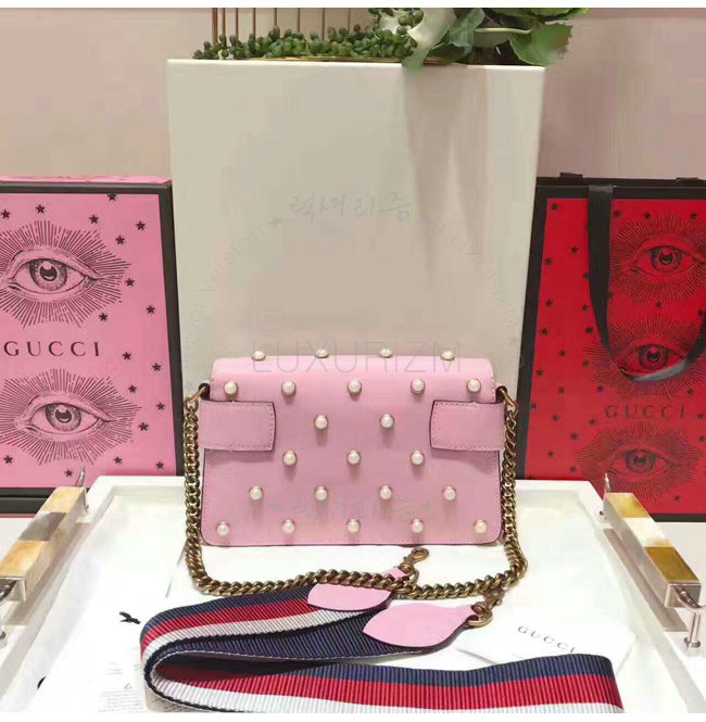 [스페셜오더]GUCCI-453778 8007 구찌 Broad way 브로드웨이 펄 장식 체인 클러치 숄더스트랩백 라이트 핑크