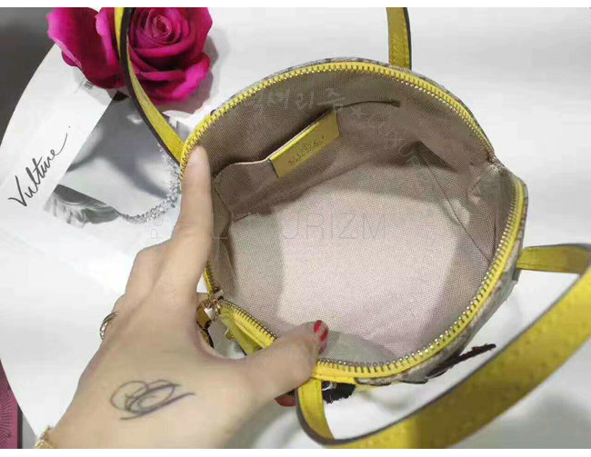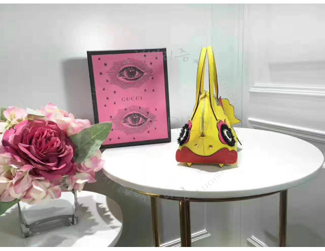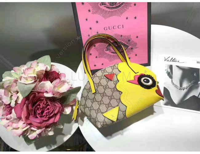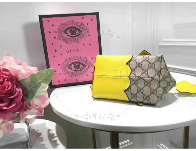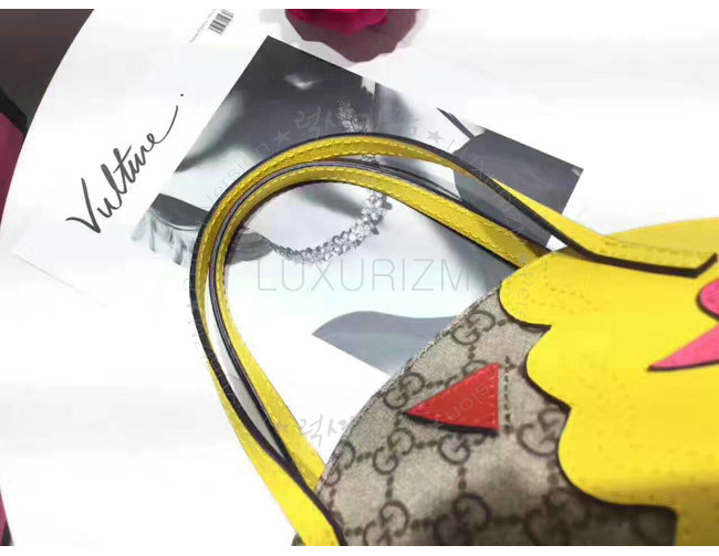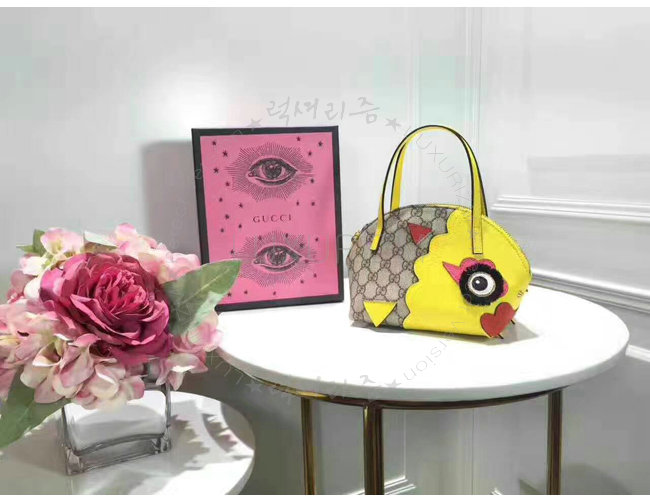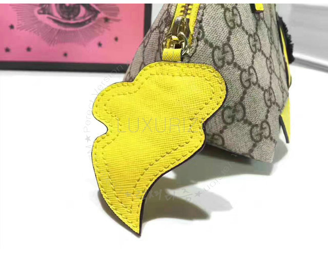 GUCCI-457350 8301 구찌 GG 수프림 캔버스 Childrens 드레곤 탑 핸들 백 옐로우