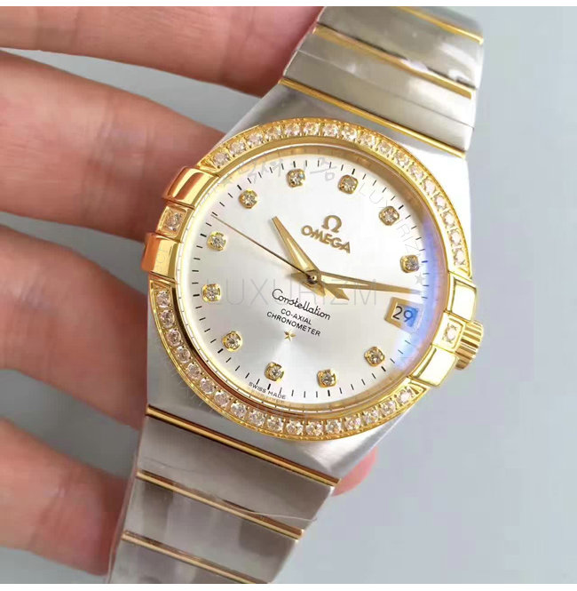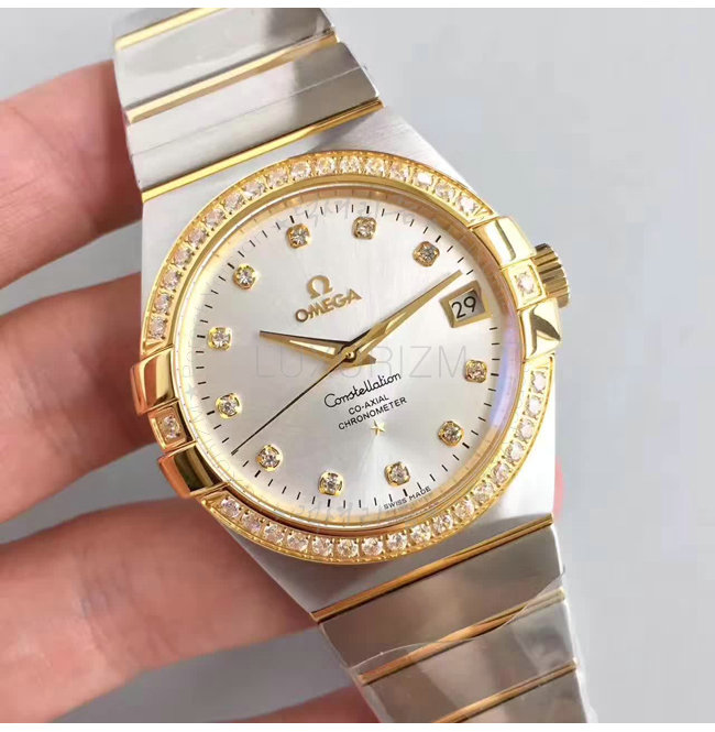 #오메가 컨스텔레이션 코-액시얼 옐로우 골드 스틸 다이아 인덱스/베젤 워치 38mm