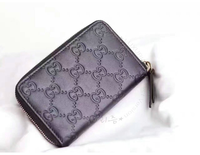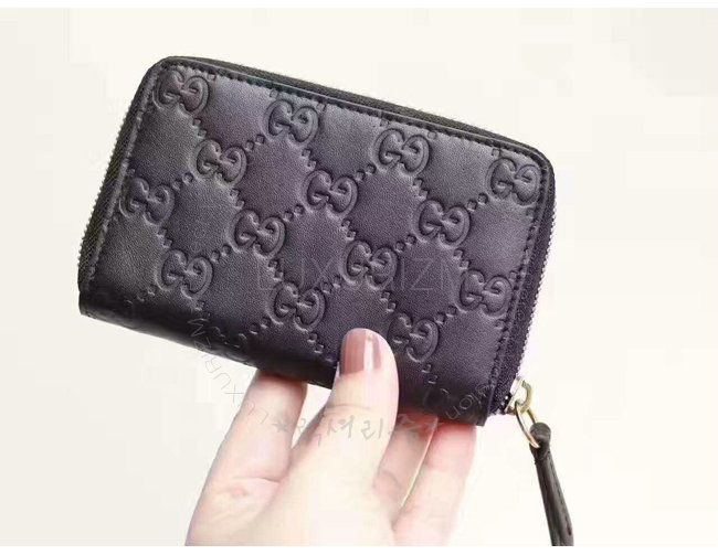 구찌 시그니처 가죽으로 제작된 지퍼달린 카드 케이스.