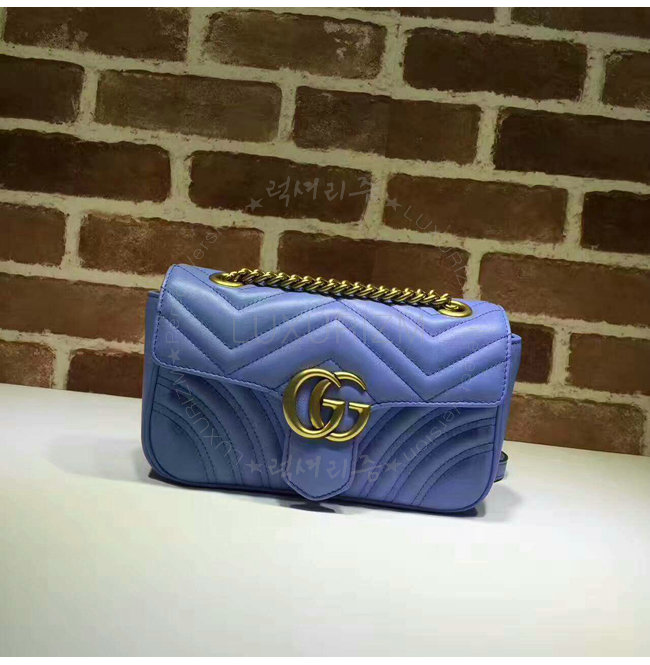 [스페셜오더]GUCCI-446744 4338 구찌 GG Marmont 미니 소프트 스트럭처드 체인 숄더백 라이트 블루