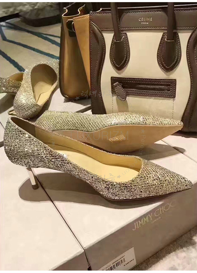 JIMMY CHOO-ROMY40GFA 지미추 샴페인 글리터 패브릭 펌프 여성용