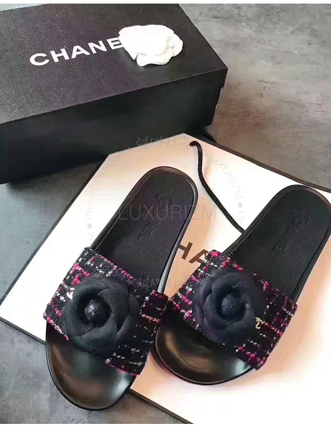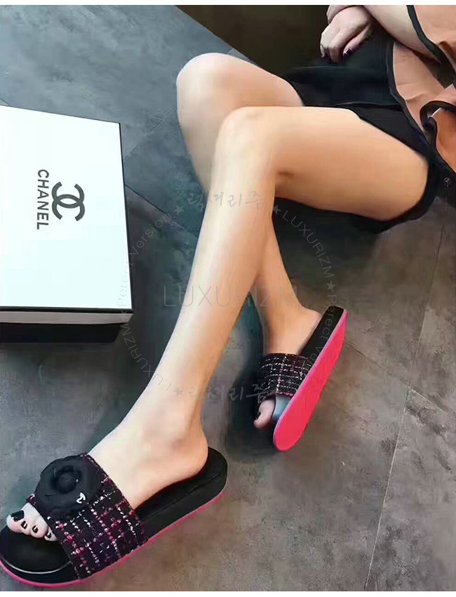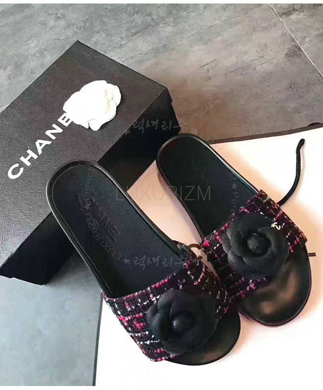 CHANEL-G32787 샤넬 블랙핑크 트위드 그로그랭 뮬 여성용