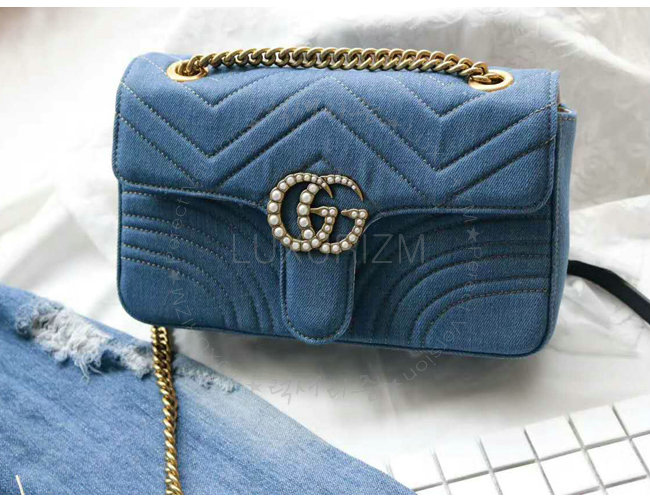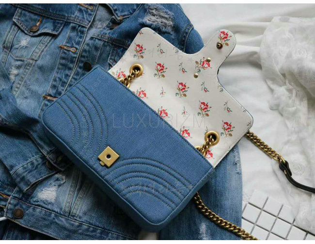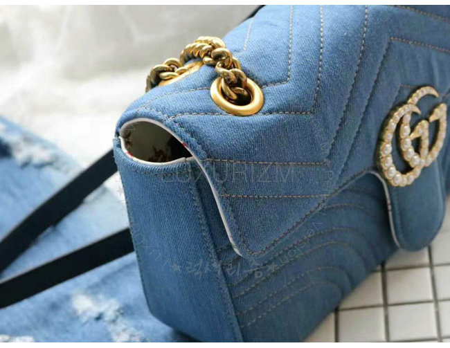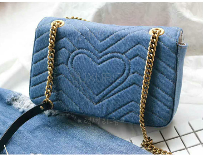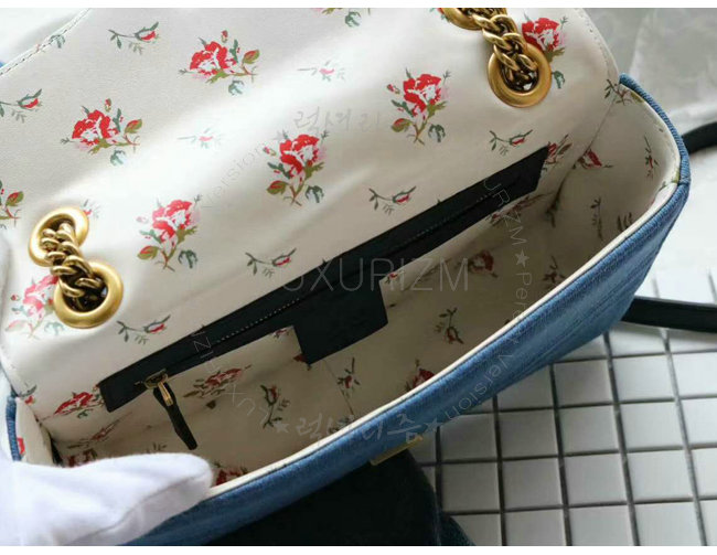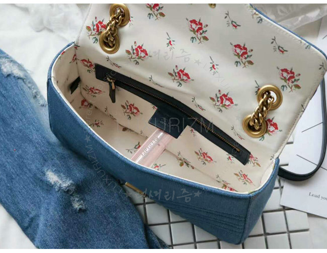 [스페셜오더]GUCCI-443497 4381 구찌 GG Marmont 마몽 한정판 체인 숄더 스트랩백 데님
