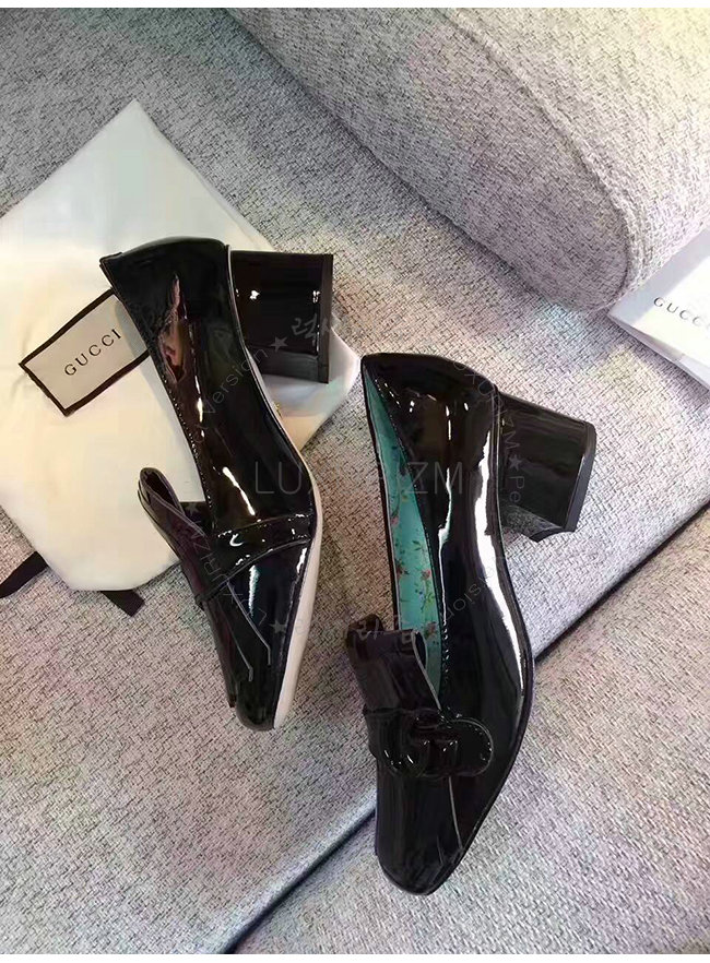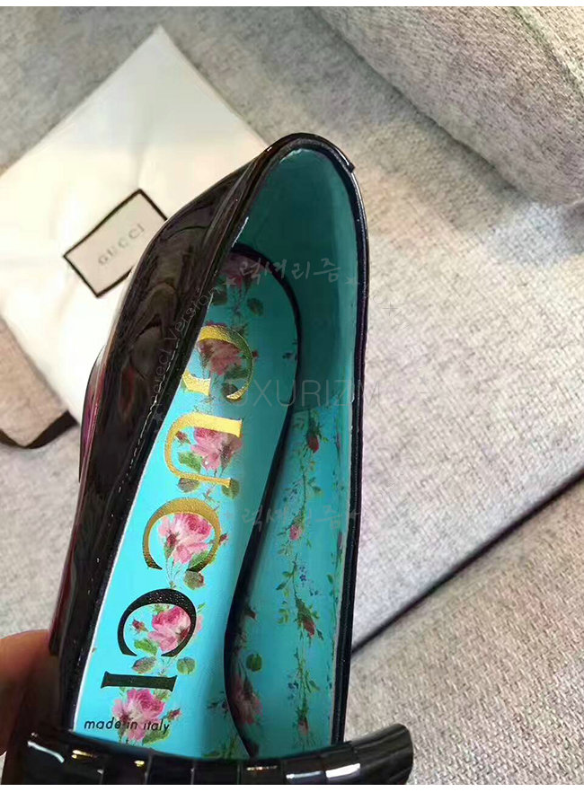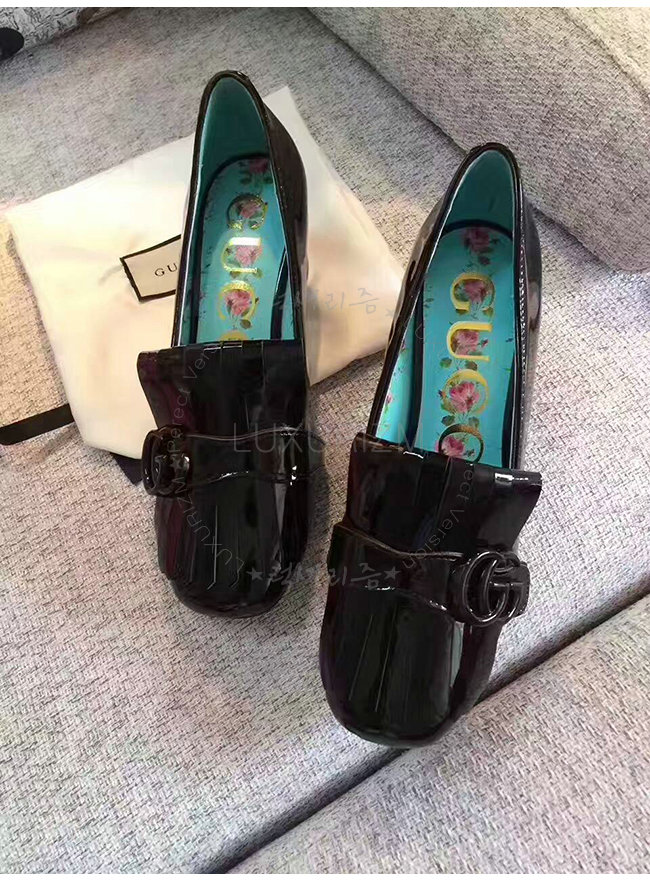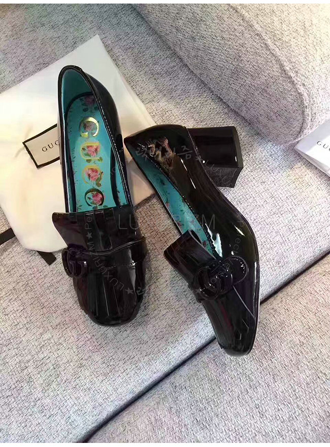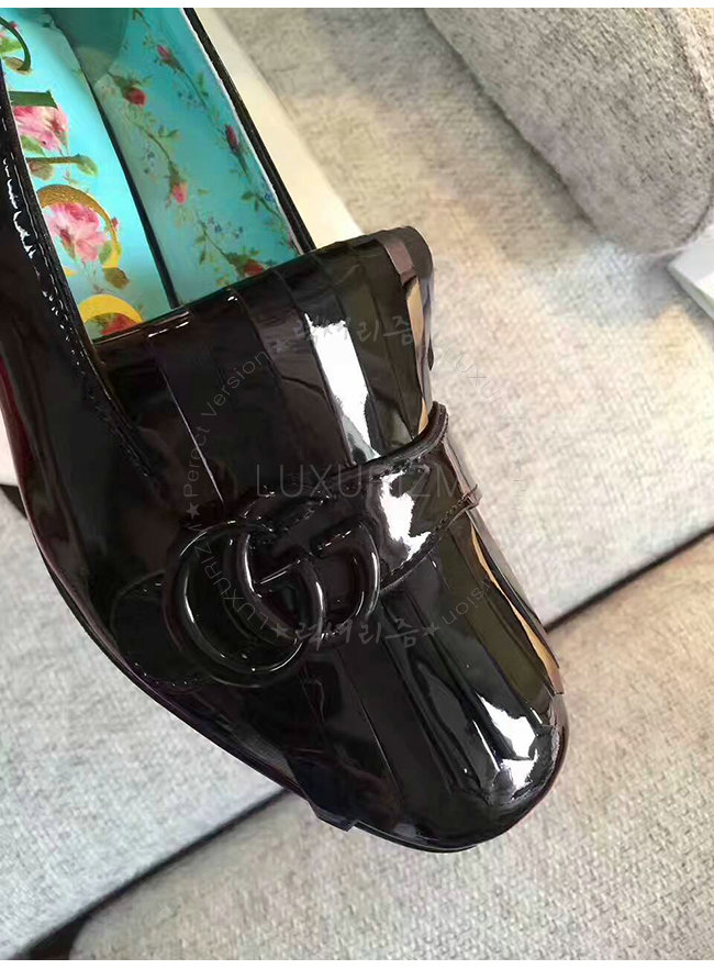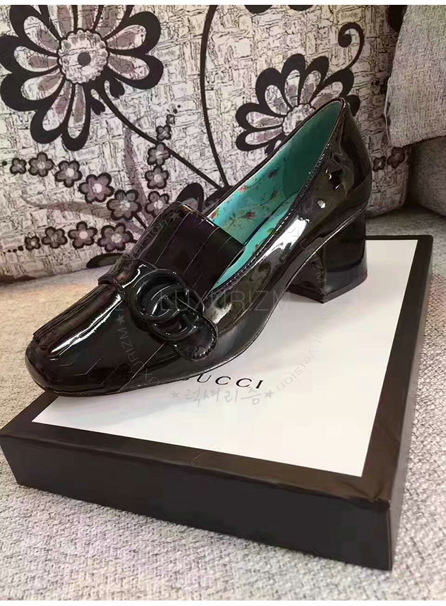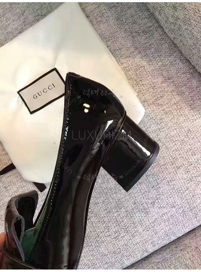 GUCCI-474510 1000 구찌 블랙 페이던트 가죽 미드힐 펌프스 여성용