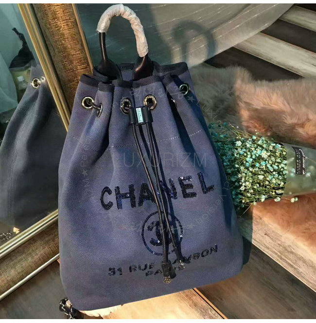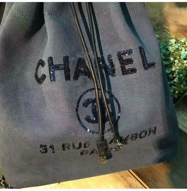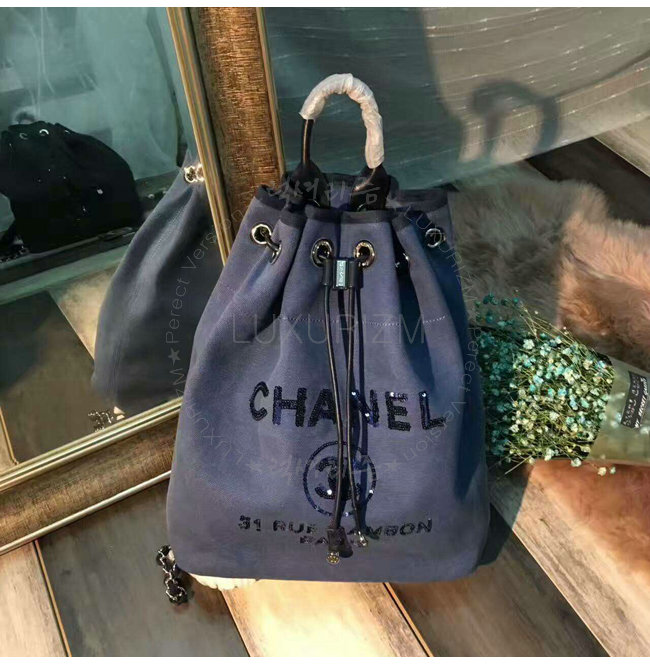 [스페셜오더]CHANEL-A93787 샤넬 캔버스 시퀸 실버 메탈 백팩 네이비