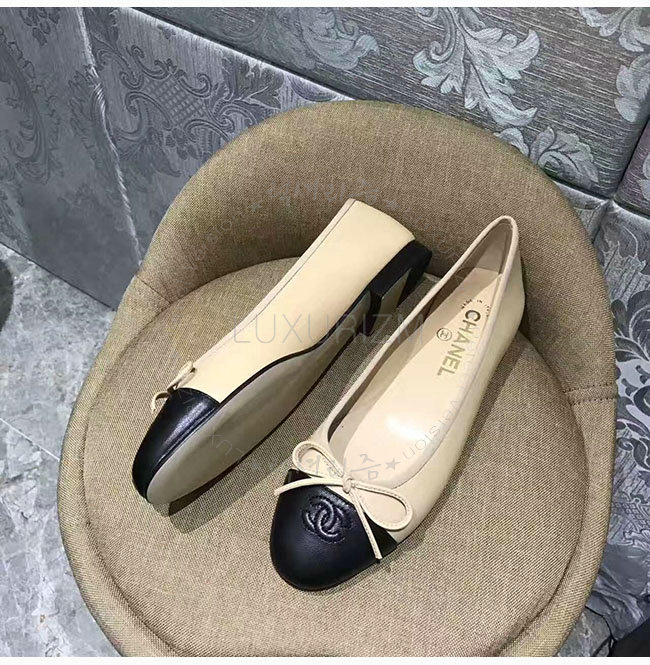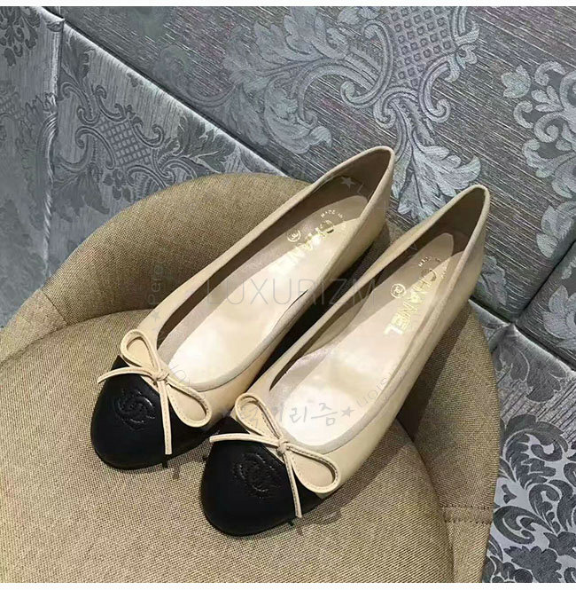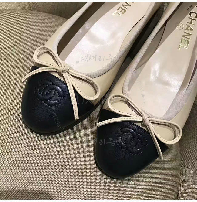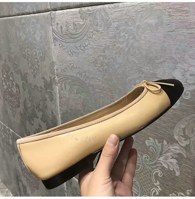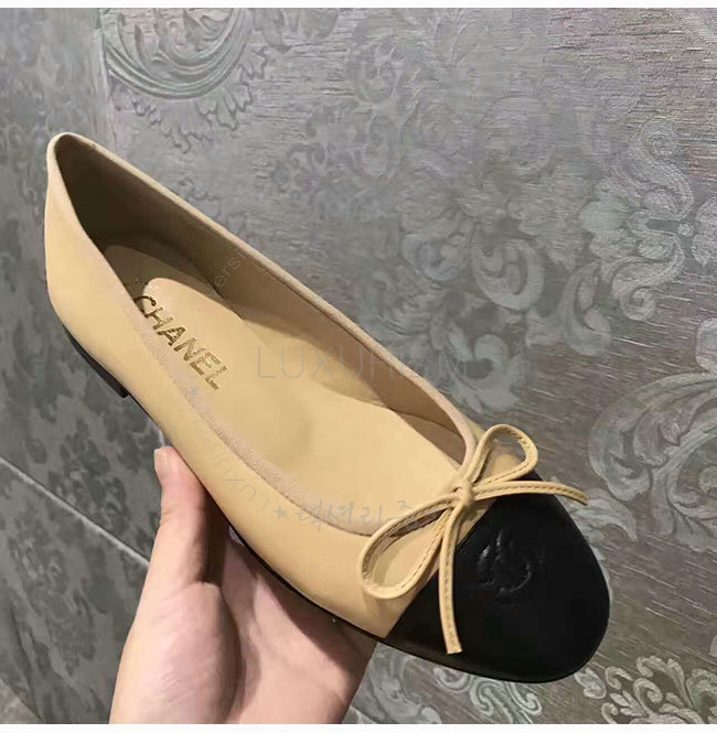 CHANEL-G02819 샤넬 베이지 블랙 램스킨 플랫 여성용