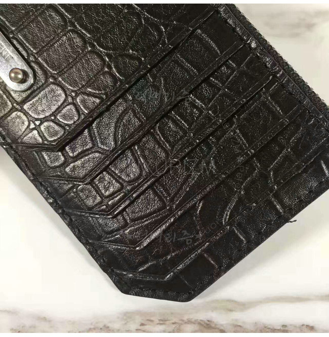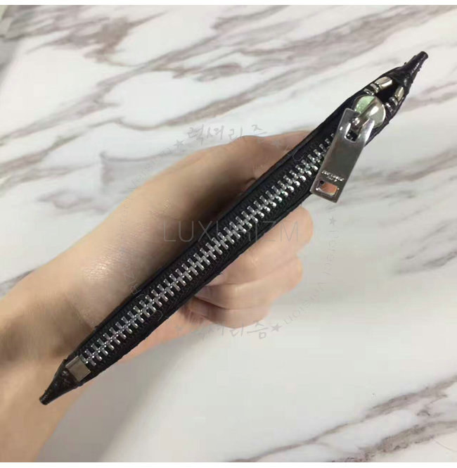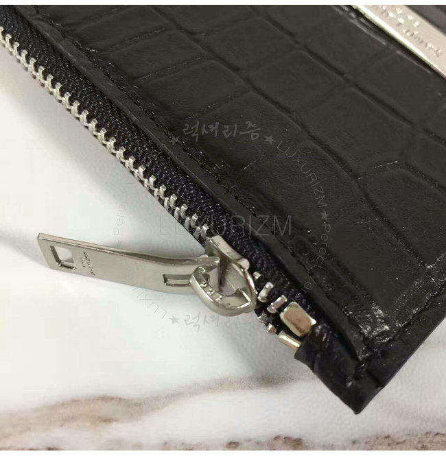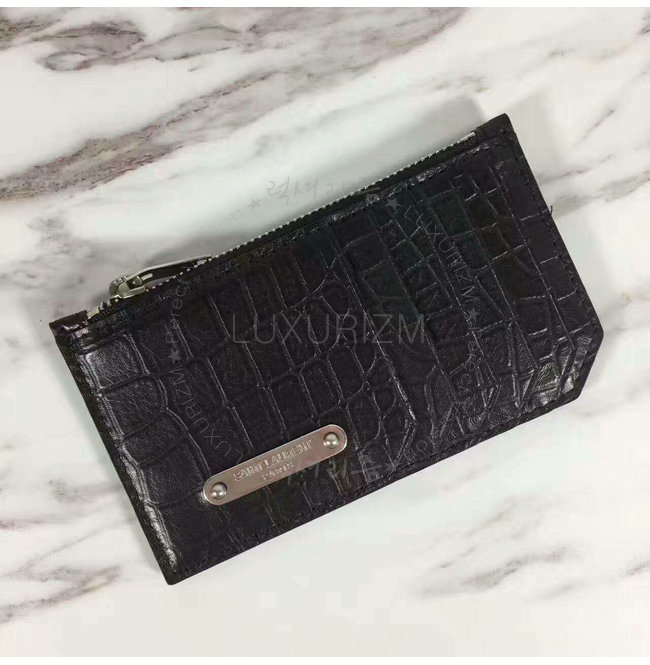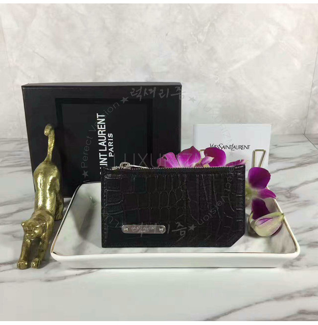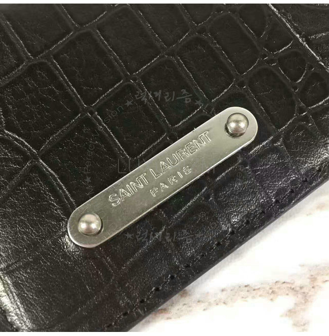 SAINT LAURENT-462346 생 로랑 크로커다일 무늬 블랙 가죽 ID 프라그망 지퍼 파우치