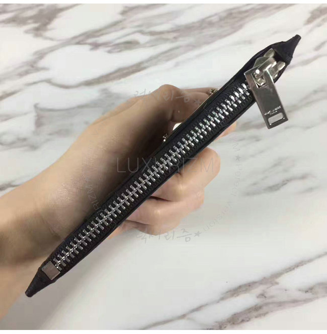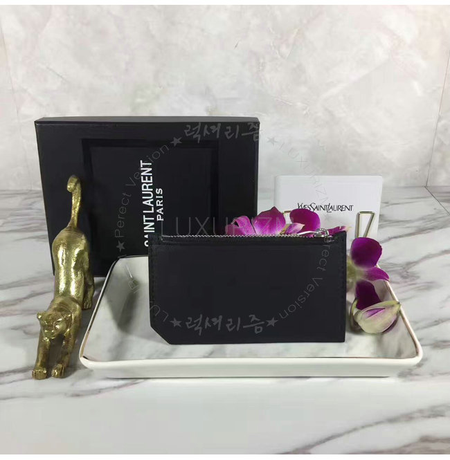 SAINT LAURENT-462346 생 로랑 블랙 송아지 가죽 ID 프라그망 지퍼 파우치