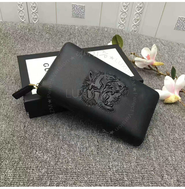 [스페셜오더]GUCCI-451182 1000 Gucci Bestiary 타이거 엠보스드 집 어라운 지갑 블랙