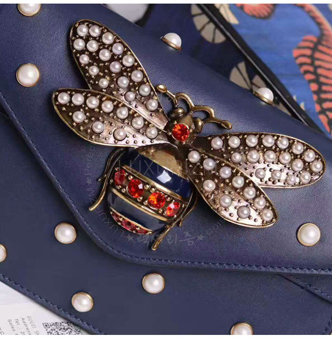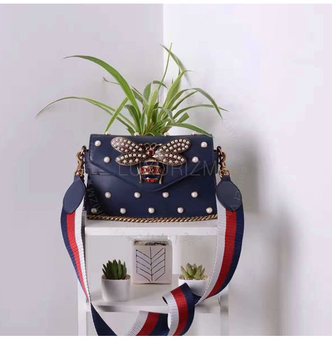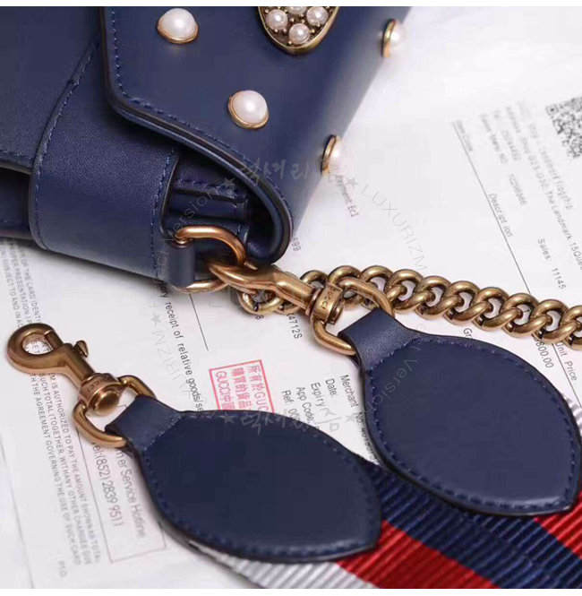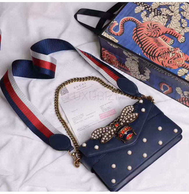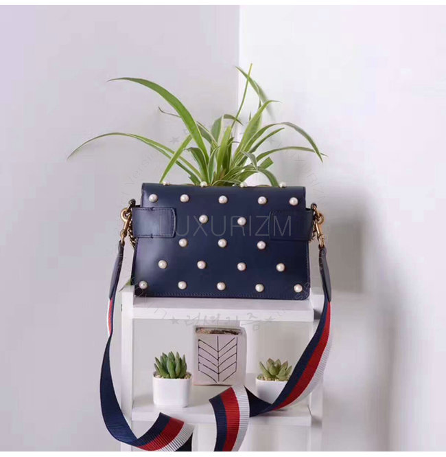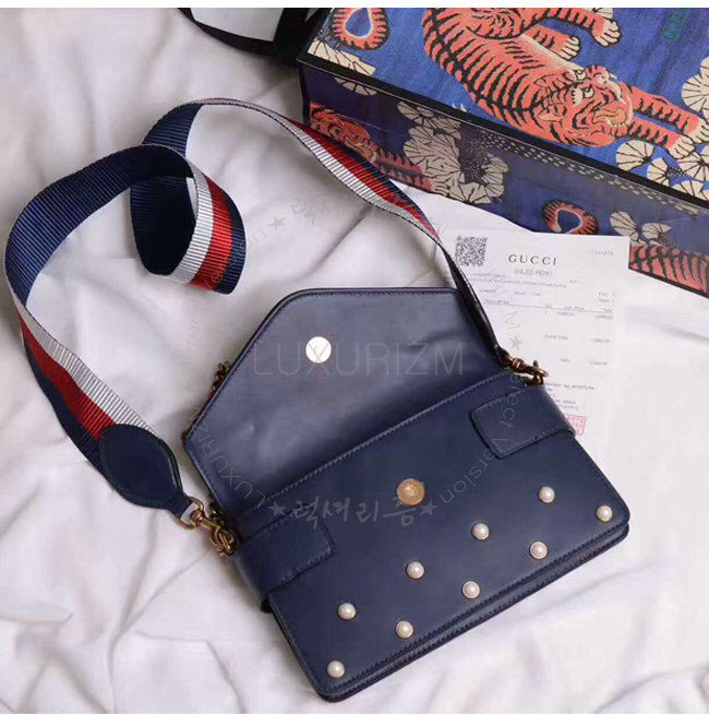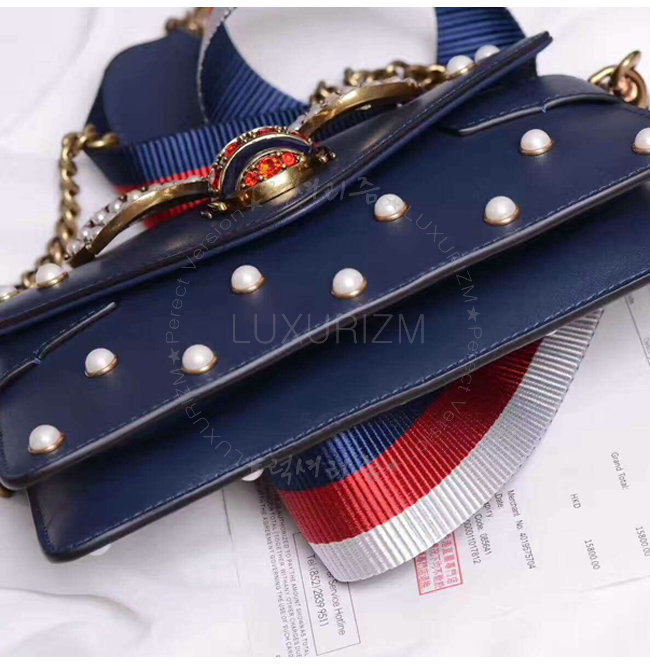 [스페셜오더]GUCCI-453778 4274 구찌 Broad way 브로드웨이 펄 장식 체인 클러치 숄더 스트랩 백 네이비