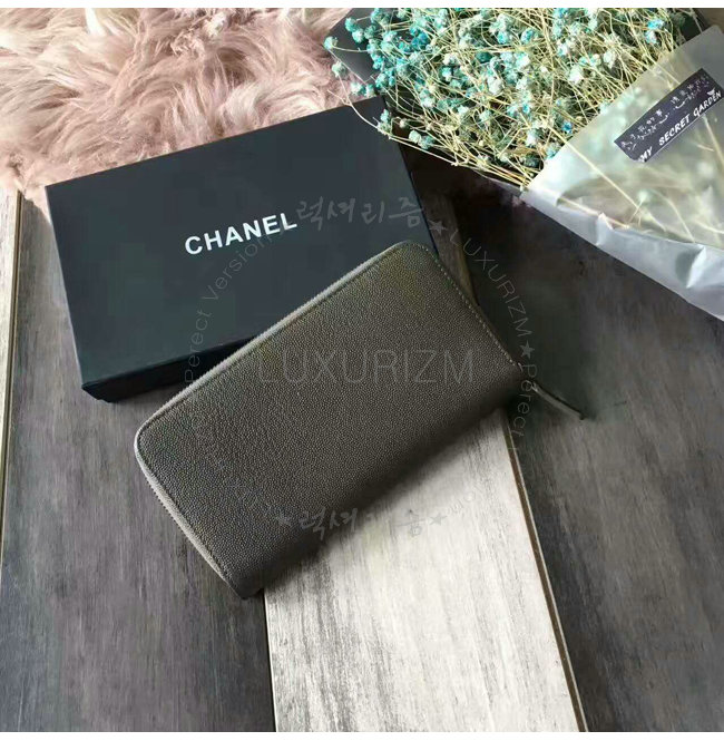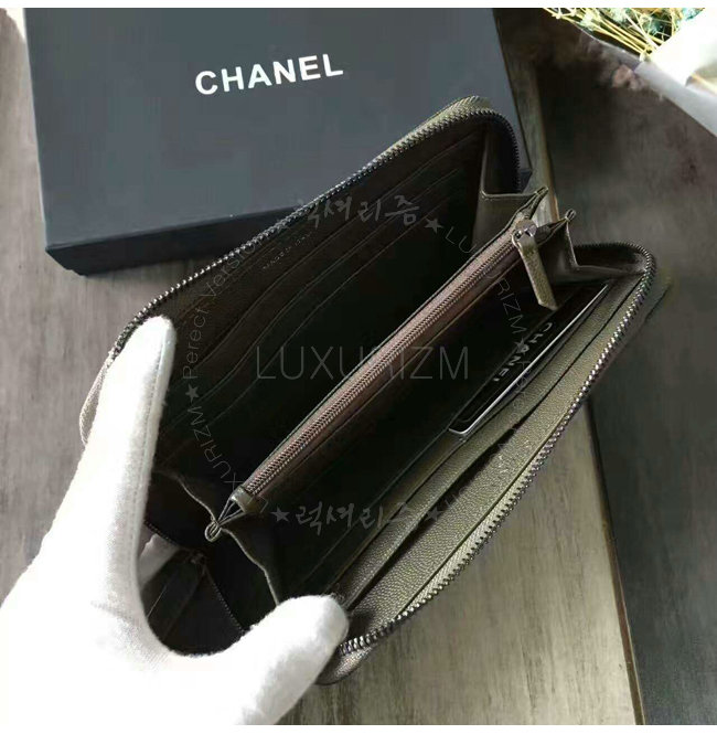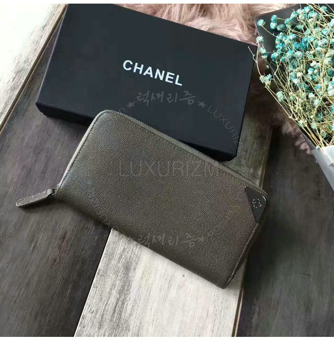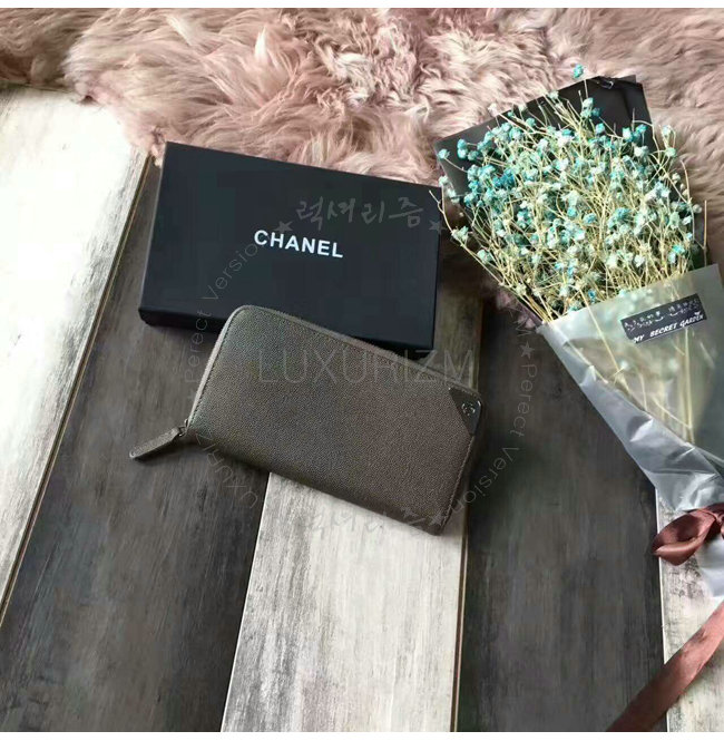 [스페셜오더]CHANEL-A84174 샤넬 그레인드 불스킨 지퍼 지갑 카키