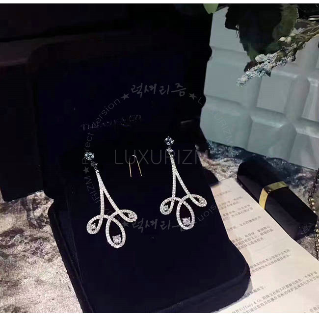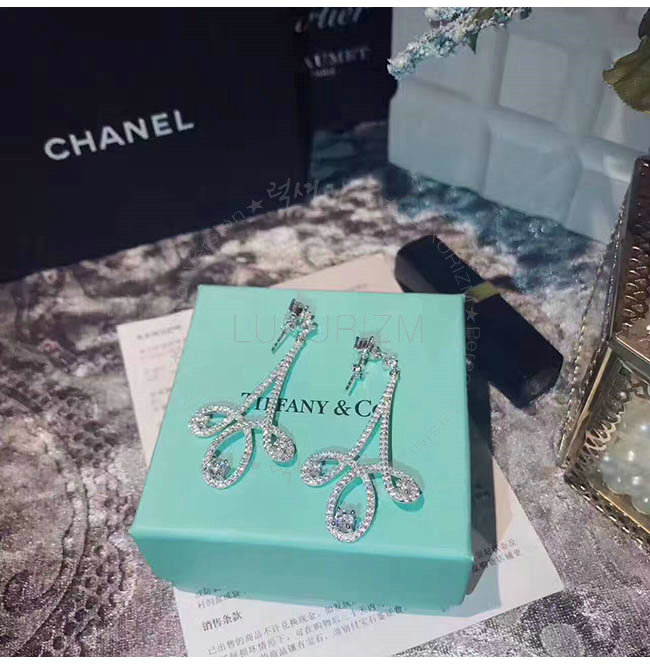 TIFFANY AND CO-TC004 티파니앤코 인챈트 다이아몬드 세팅의 플래티늄 스크롤 이어링