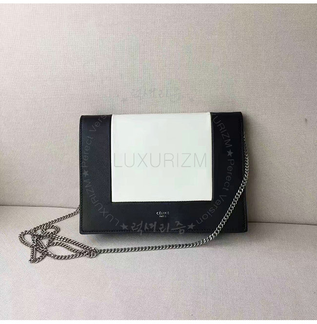 #홍콩이미테이션쇼핑몰 셀린느전문쇼핑몰 업데이트 최고 빠른사이트추천 럭셔리즘 [스페셜오더]CELINE-107773 셀린느 블랙 화이트 가죽 프레임 이브닝 클러치 체인백 여성용