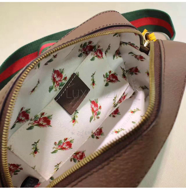 타원형 구찌 가죽 태그 오픈 포켓 및 20 드롭 숄더 스트랩 지퍼 클로저.