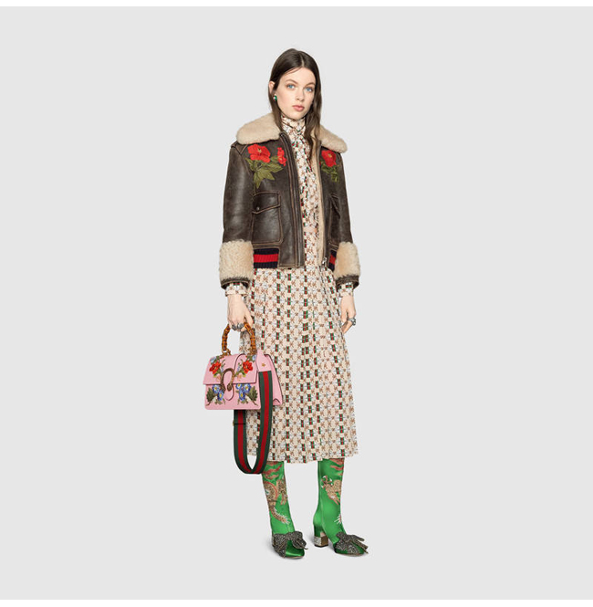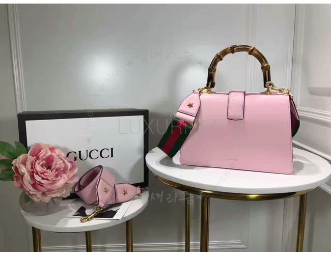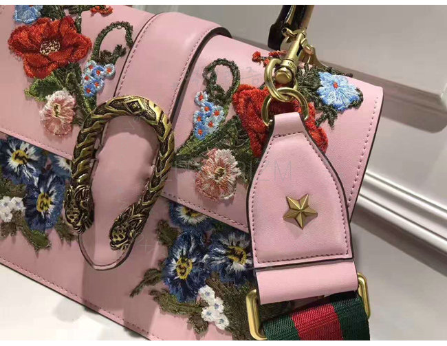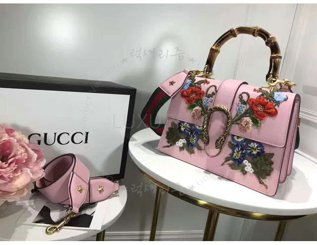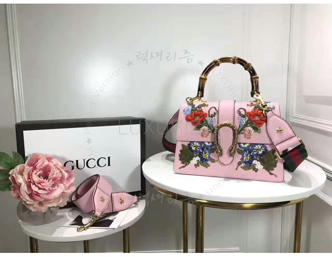 [스페셜오더]GUCCI-448075 8303 구찌 Dionysus embroidered 핑크 가죽 미디엄 밤부 탑 핸들 백