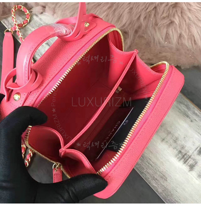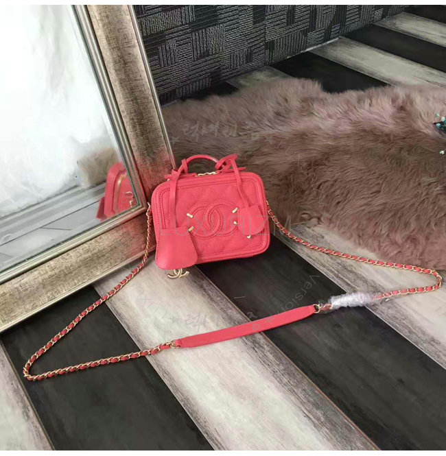 [스페셜오더]CHANEL-A93342 샤넬 그레인드 카프스킨 골드 메탈 스몰 코스메틱 케이스 코랄