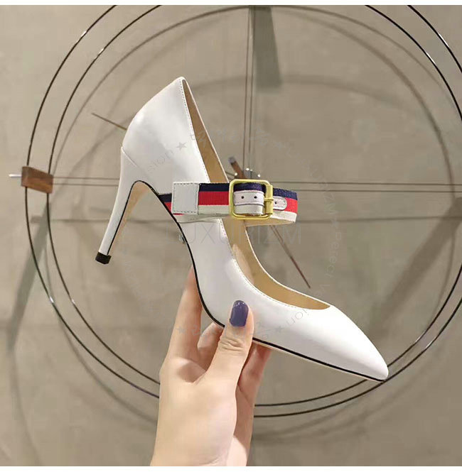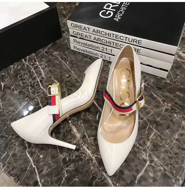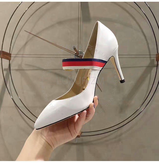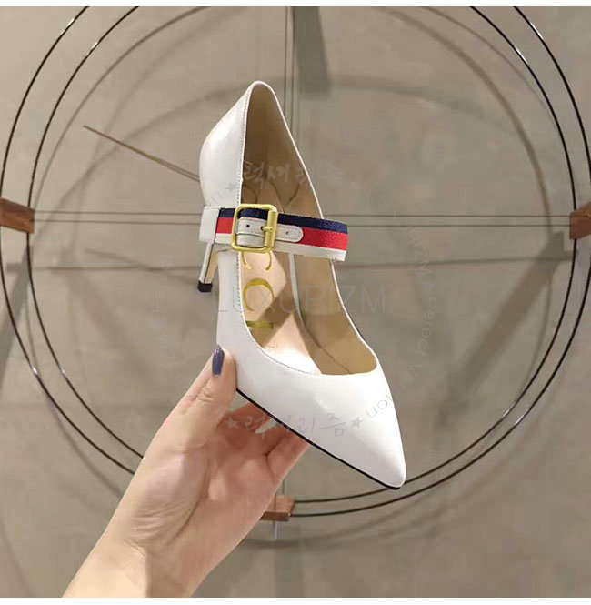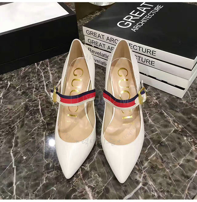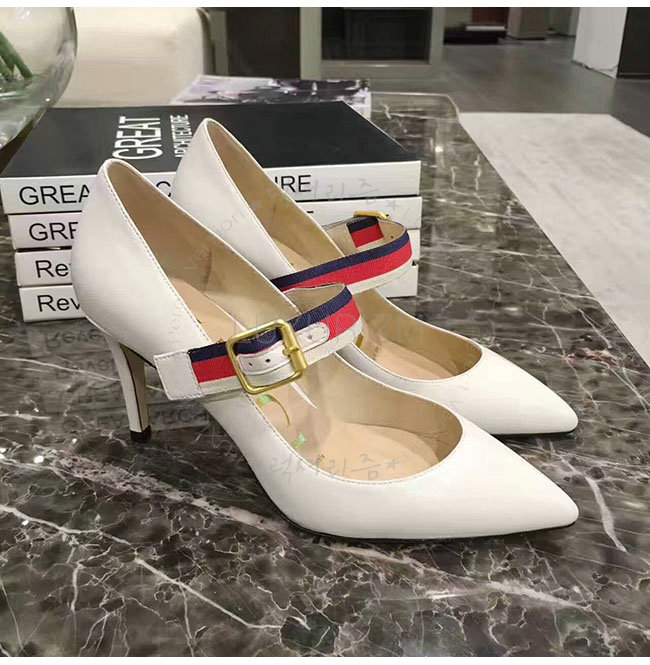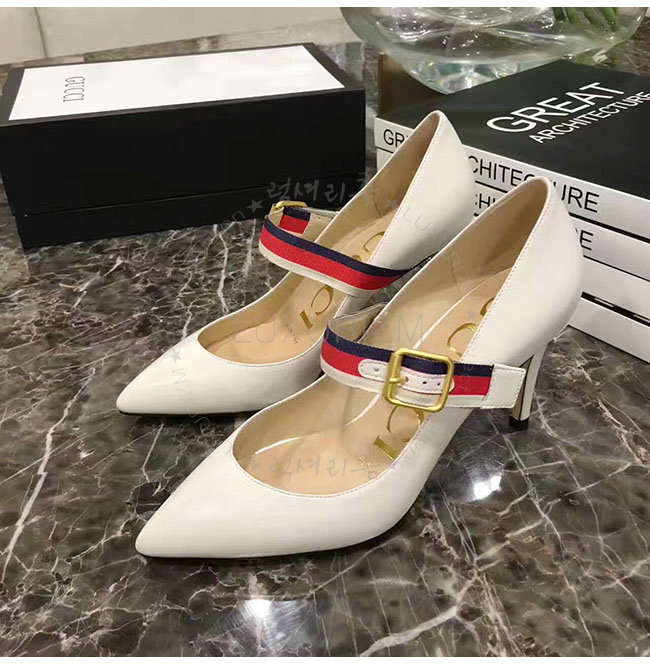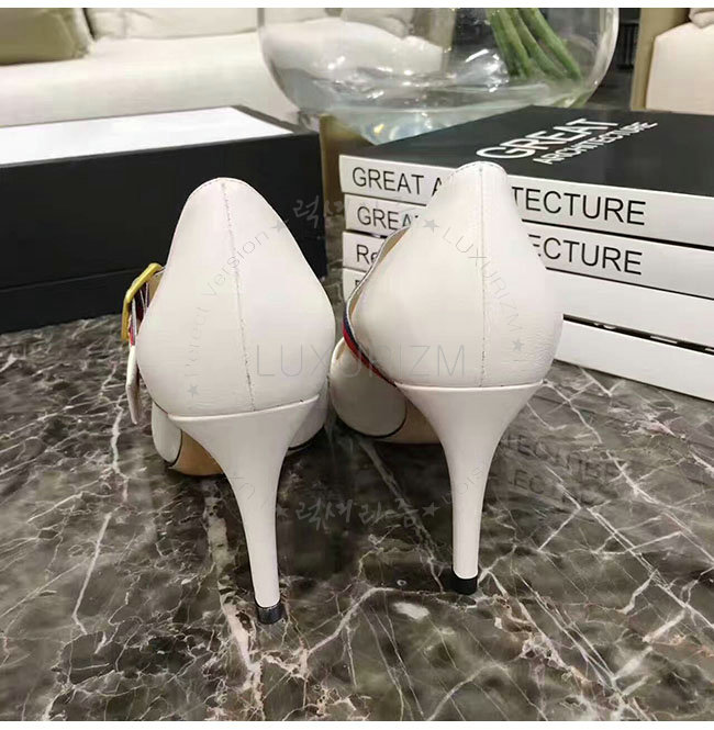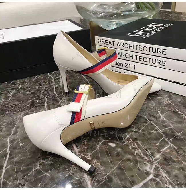 GUCCI-475086 9082 구찌 화이트 가죽 미드힐 펌프스 여성용