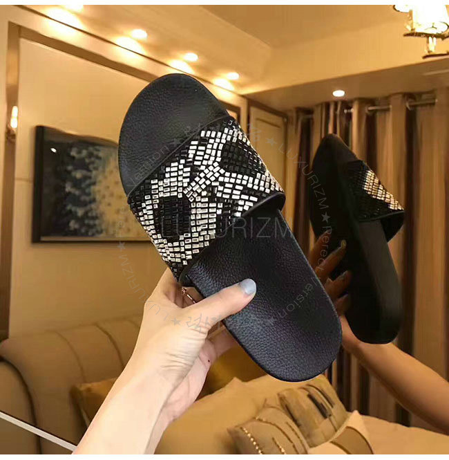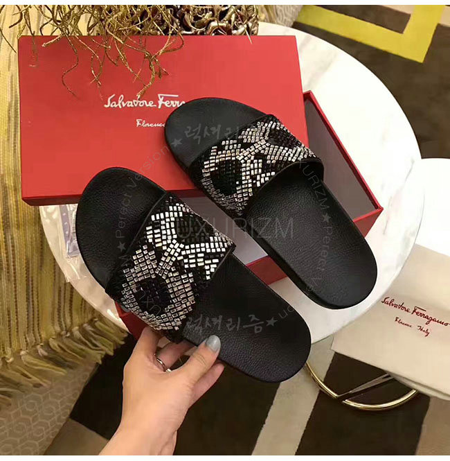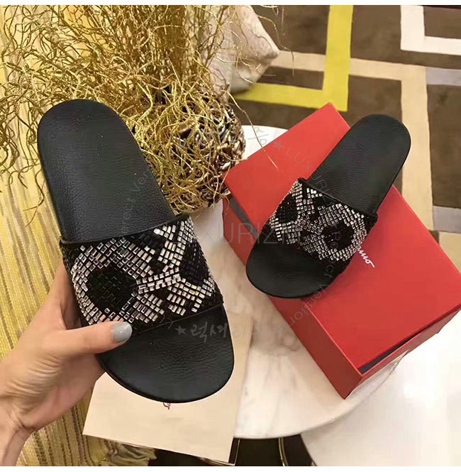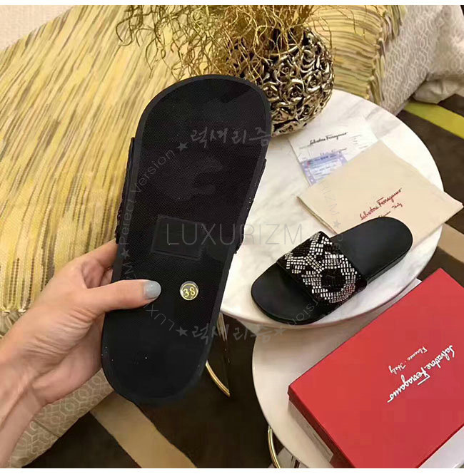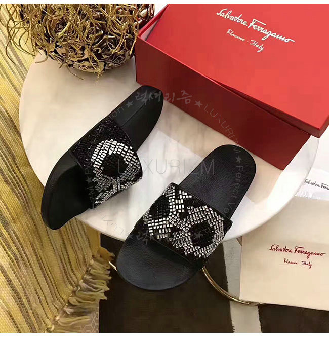 FERRAGAMO-034877 페라가모 살바토레 블랙 화이트 크리스탈 슬리퍼 남성용